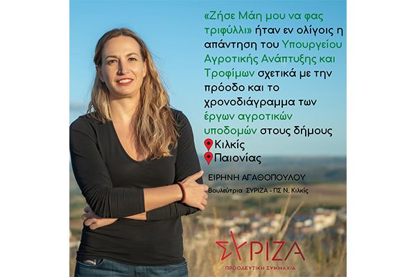Τα παραπάνω, καταδεικνύουν τον εμπαιγμό του τότε Υφυπουργού Αγροτικής Ανάπτυξης και Τροφίμων, κ. Σκρέκα και της κυβέρνησης της ΝΔ στους πολίτες του Κιλκίς και της Παιονίας και τη καλλιέργεια προσδοκιών στους επαγγελματίες του πρωτογενή τομέα χωρίς να υπάρχει η παραμικρή ένδειξη για την υλοποίηση όλων όσων τους υποσχέθηκε κατά τη διάρκεια της περιοδείας του στο Κιλκίς.
