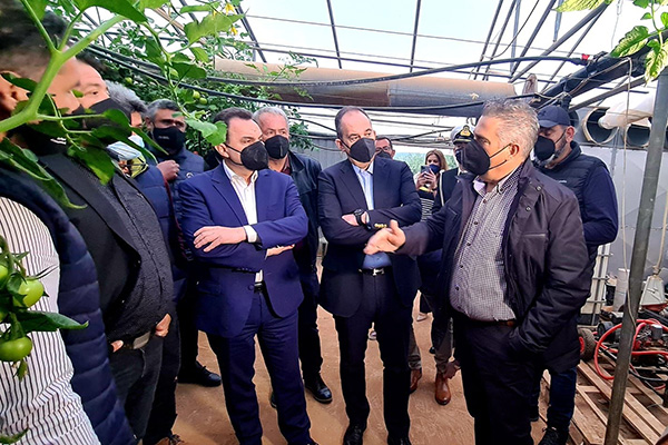 Πριν τη συνάντηση στο Δημαρχείο της Ιεράπετρας, ο ΥΠΑΑΤ κ. Γ. Γεωργαντάς, μαζί με τον υπουργό Ναυτιλίας και Νησιωτικής Πολιτικής κ. Γιάννη Πλακιωτάκη, επισκέφθηκαν τις εγκαταστάσεις του Αγροτικού συνεταιρισμού "Κάμιρος", καθώς και θερμοκηπιακές εγκαταστάσεις της περιοχής.