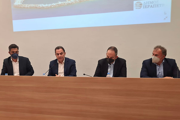 Σε σύσκεψη που πραγματοποιήθηκε στο Δημαρχείο με την παρουσία του Υπουργού Ναυτιλίας και Νησιωτικής πολιτικής κ. Γ. Πλακιώτικη, του ΓΓ κ. Δ. Παπαγιαννίδη και του Δημάρχου Ιεράπετρας κ. Θεοδόσης Καλαντζάκη, έγινε εξαντλητική συζήτηση σε ιδιαίτερα θετικό κλίμα με πάνω από 40 εκπροσώπους φορέων του αγροδιατροφικού τομέα της περιοχής.