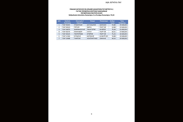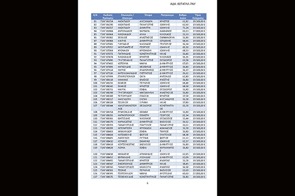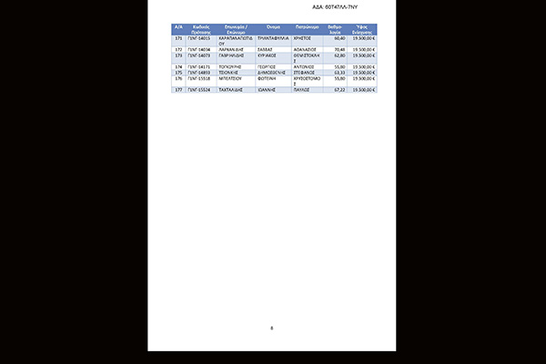 1. Πίνακα δικαιούχων για τους οποίους δεν απαιτείται προσκόμιση επιπλέον δικαιολογητικών. Ο Πίνακας περιλαμβάνει 177 δικαιούχους συνολικού ποσού δημόσιας δαπάνης 3.481.500,00 €.