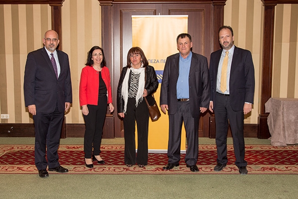 Στη φωτογραφία: Από αριστερά ο κ. Γιάννης Χανιωτάκης Διευθυντής Ανάπτυξης Εργασιών Αγροτικού Τομέα της Τράπεζας Πειραιώς, η κα Αναστασία Σεκέρη Βοηθός Γενικός Διευθυντής Δικτύου και επικεφαλής του Δικτύου Βορείου Ελλάδας της Τράπεζας, η πρώτη βραβευθείσα κα. Θωμαή Κοτρώτσιου ο δεύτερος βραβευθείς κ. Χαράλαμπος Παπαγατσιας και ο κ. Αναστάσιος Νέτας, Περιφερειακός Διευθυντής Θεσσαλίας της Τράπεζας.