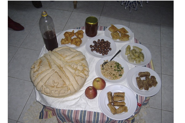 Ετσι ολόκληρη η οικογένεια συγκεντρωμένη από τον μεγαλύτερο ως τον νεαρότερο στην ηλικία και σε πνεύμα αγάπης και συγχώρεσης, στρουμπιάζονται (κάθονται αναπαυτικά) γύρω από το σοφρά. Ο αρχηγός της οικογένειας, ο Παππούκας, θα θυμιάσει και θα κόψει το ψωμί και θα βάλει «ευλογητός».