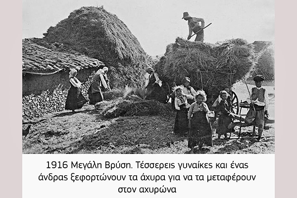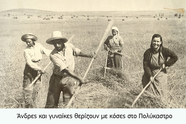 Στα δημοσιεύματα του Τύπου της προπολεμικής περιόδου συχνές είναι οι αναφορές για τη δυσχερή οικονομική θέση των αγροτών προσφύγων και το οικονομικό αδιέξοδο που είχαν περιέλθει εξαιτίας της αδυναμίας αποπληρωμής των δανείων που τους καθιστούσε έρμαια των τοκογλύφων ή των τραπεζών και αναγκάζονταν να «πωλούσι και αυτόν ακόμη τον μοναδικόν των βουν ίνα συλλέξωσι το απαιτούμενον προς εξόφλησιν των χρεών των ποσόν». Συχνές ήταν και οι αναφορές για τις δυσκολίες της αγροτικής αποκατάστασης με τις ελλείψεις στη χορήγηση αροτριώντων κτηνών, εργαλείων, σπόρων ή για τις αντιξοότητες που αντιμετώπιζαν οι αγρότες, καθώς ήταν δέσμιοι των στοιχείων της φύσης. Ελάχιστα, όμως, ήταν τα δημοσιεύματα που αφορούσαν τις αγρότισσες της περιοχής μας, τις νεαρές κοπέλες που από τα άγρια χαράματα πήγαιναν στα χωράφια «ανεβασμένες στα κασσόνια των αραμπάδων, σοβαρώτατες, με τα χέρια γεμάτα κοψιές από το κρύο, [να] πλέκουν ακατάπαυστα» ή για τις γυναίκες κάθε ηλικίας, τυλιγμένες με το τσεμπέρι για να προστατευθούν απ’ το λιοπύρι να οδηγούν ένα ψωραλέο άλογο στη διαδικασία του οργώματος, να σβαρνίζουν για να θρυμματιστούν οι «μπλάνες», να θερίζουν με το δρεπάνι και να δένουν με μακριά καλαμόσταχα τα «χερόβολα».