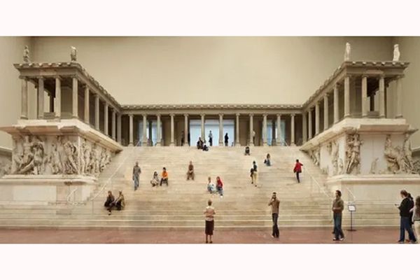 Το βωμό της ίδρυσε ο Ευμένης Β΄, ως ανάμνηση της νίκης του πατέρα του Άτταλου κατά των Γαλατών. Το βωμό αυτόν ανακάλυψε το 1878 – 1881 ο Γερμανός αρχαιολόγος Karl Humann στην Ακρόπολη. Ενθουσιασμένος από την ανακάλυψη ζήτησε να δει τον Σουλτάνο της Οθωμανικής Αυτοκρατορίας και αφού ήλθε σε συνεννόηση μαζί του, μετέφερε κομμάτι, κομμάτι το βωμό στο Βερολίνο όπου και τον αναστήλωσε με μεγάλη επιτυχία. Η αναστήλωση του κράτησε ως το έτος 1902 κι΄ όταν το 1930 λειτούργησε το Μουσείο του Βερολίνου έγινε και ο βωμός επισκέψιμος.