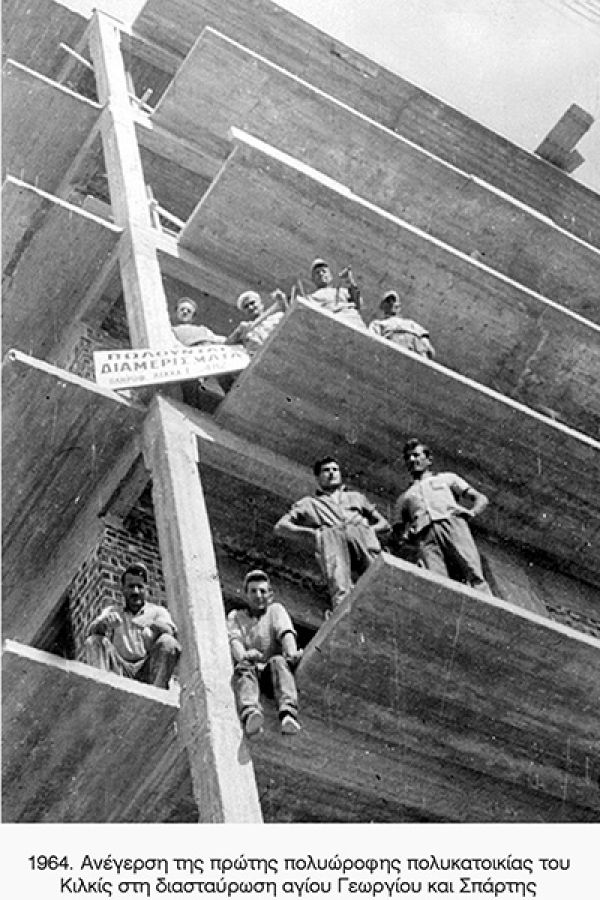 Η ταχύτατη διάδοση της πολυκατοικίας στη δεκαετία του 1950 εμφανίστηκε στο Κιλκίς 20 χρόνια αργότερα, στις αρχές της δεκαετίας του 1970. Την περίοδο αυτή ένας μικρός αριθμός επιχειρηματιών κατασκευαστών διαβλέποντας τα μεγάλα κέρδη του κλάδου επένδυσαν κεφάλαια στην οικοδομή. Από τους πρώτους εργολάβους οικοδομών στην πόλης μας ήταν ο πολιτικός μηχανικός Κυριάκος Κυριακίδης, ο αρχιτέκτονας Ευάγγελος Ζιούτας, ο υπομηχανικός Τέλης Γερασιμίδης αλλά και κατασκευαστές που δεν ζούσαν στο Κιλκίς όπως ο Χρήστος Καραστεφάνου. Υπήρχαν και αυτοί που δεν είχαν προηγουμένως σχέση με τις κατασκευές όπως ο Άγγελος Τότσικας, που κατασκεύασε γύρω στις 10 πολυκατοικίες.
