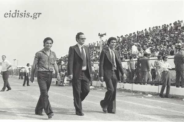2. Εθνικό Στάδιο Κιλκίς- Κυριακή 20 Ιουνίου 1976. Από δεξιά Αναστάσιος Αμανατίδης, πρόεδρος Κιλκισιακού, Ιωάννης Παναγιωτίδης Νομάρχης Κιλκίς, Οδυσσέας Πιπερίδης πρόεδρος της ΕΠΣ Κιλκίς