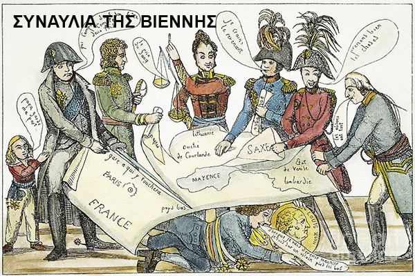 - στο προνόμιο ρύθμισης των ευρωπαϊκών πραγμάτων που διεκδίκησαν για τον εαυτό τους οι Μεγάλες Δυνάμεις. Στο μυστικό άρθρο 1 της Συνθήκης των Παρισίων που υπεγράφη στις 30 Μαϊου 1814 οριζόταν ότι η διάθεση των εδαφών έπρεπε να ρυθμιστεί μεταξύ των Συμμαχικών Δυνάμεων.