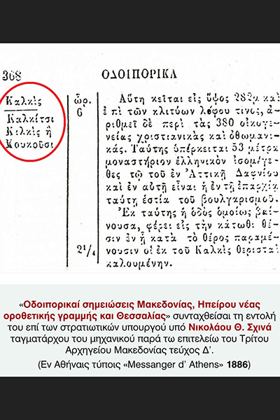 Την ονομασία Καλκίς καταγράφει ως κύρια ο Ν. Σχινάς στις οδοιπορικές σημειώσεις του που εκδόθηκαν το 1886, ενώ δεν παραλείπει να επισημάνει και τις άλλες: Καλκίτσι, Κιλκίς ή Κουκούσι. Η ονομασία Κaλκίς χρησιμοποιείται και αυτή σε διάφορες επιστολές του 19ου αιώνα όπως του ιατρού Θ. Τσαγρή προς τον μητροπολίτη Θεσσαλονίκης Καλλίνικο στις 29 Μαΐου 1881. Στο κατάστιχο αλληλογραφίας του επισκόπου Πολυανής Παρθενίου του 1900 αναφέρεται ως Κιλκίς και Κιλκίτση. Ως Κιλκίς και δευτερευόντως Kilkich εμφανίζεται η πόλη στον οδηγό της Ελλάδος του Ν. Ιγγλέση του 1911.