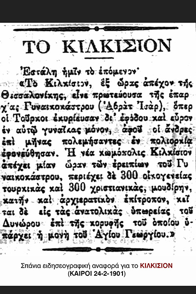 Η ένοπλη σύρραξη την περίοδο του Μακεδονικού Αγώνα και ο 2ος Βαλκανικός πόλεμος προκάλεσαν το ενδιαφέρον των ξένων εφημερίδων που μεταξύ άλλων ανέφεραν και το Κιλκίς στις ανταποκρίσεις του. Στο φύλλο της 9ης Αυγούστου του 1903 οι New York Times ονομάζουν την πόλη kilkitch ενώ η ίδια εφημερίδα σε δημοσίευμα της για τη μάχη στις 4 Ιουλίου 1913 (21 Ιουνίου με το παλιό ημερολόγιο που ίσχυε στην Ελλάδα) την αναφέρει ως kilkish. Την ονομασία kilkitch χρησιμοποιεί και η ισπανική ABC της Μαδρίτης στα φύλλα της 1/07 και 7/08 του 1913 ενώ ως Kilkiz (ou Kilkich) καταγράφεται στο περιοδικό L’ Illustration στο τεύχος της 26-7-1913.