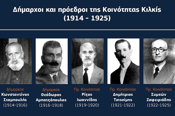 Η επανάσταση του 1922 έφερε, όπως ήταν αναμενόμενο, αλλαγές και στις κοινοτικές αρχές. Πρόεδρος της κοινότητας διορίστηκε ο Συμεών Ζαφειριάδης (1876-1953) γιατρός με μεγάλη προσφορά στην υγειονομική περίθαλψη των Κιλκισιωτών σε μια περίοδο που η περιοχή μαστίζονταν από την ελονοσία και τη φυματίωση. Ήταν ένας από τους πρώτους γιατρούς που στελέχωσαν το νοσοκομείο της Αμερικάνικης Επιτροπής Περίθαλψης που στεγαζόταν σε ένα από τα κτίρια των παλιών τούρκικων στρατώνων στη σημερινή πλατεία Ειρήνης. Μέλη του συμβουλίου ήταν οι Βασίλειος Λαναράς, Ιωάννης Φαχουρίδης, Αλέξανδρος Σακαρίδης, Γεώργιος Ιωαννίδης και Δημήτριος Κουκουδέας με το νέο συμβούλιο να υπογράφει την πρώτη απόφασή του στις 27 Νοεμβρίου 1922. Από το Μάρτιο της επόμενης χρονιάς συναντάμε τρία ακόμη ονόματα: τον Χριστόδουλο Λαμπρόπουλο, τον Κωνσταντίνο Ιωαννίδη και τον Μιχαήλ Τσιτσίμη.