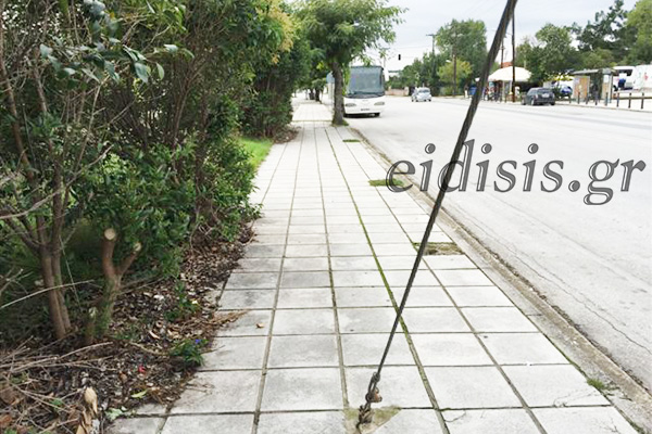 Από τις επικινδυνότητες του πεζοδρομίου ξεχωρίζουν οι λαιμητόμοι ακάλυπτοι επίτονοι των στύλων φωτισμού για την επικάλυψη των οποίων με ημισωλήνες απαιτείται αίτημα προς την ΔΕΗ με κάλυψη των δαπανών από τον Δήμο. Απαραίτητη η επικάλυψη με ημισωλήνες για να είναι εμφανείς οι επίτονοι από τους περαστικούς και την αποφυγή σοβαρού τραυματισμού.