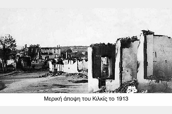 Πάντως δυσκολευόταν να γράψει Κιλκίς γιατί εκτιμούσε ότι το Κιλκίς έπαυσε να υφίσταται από τη στιγμή που ο βουλγαρικός πληθυσμός του το εγκατέλειψε παίρνοντας μαζί του ό,τι μπορούσε και βάζοντας φωτιά σε ό,τι δεν μπορούσε να μεταφέρει. Η πόλη αυτή, χτισμένη στους πρόποδες του λόφου του Αγίου Γεωργίου, του θύμιζε τα Αναφιώτικα, τη γνωστή συνοικία των Αθηνών που τα σπιτάκια της σκαρφάλωναν στον ιερό λόφο της Ακρόπολης. Μέτρησε τα ελάχιστα τα κτήρια που σώθηκαν από τη μανία της φωτιάς: μια αποθήκη, έναν ατμόμυλο, τέσσερα κτήρια της καθολικής μονής, το διοικητήριο και το τηλεγραφείο. Από τις 1388 οικοδομές που αρίθμησε ο ελληνικός στρατός, γράφοντας τον αύξοντα αριθμό στην πρόσοψή τους, οι περισσότερες είχαν απομείνει με τέσσερις κατεστραμμένους τοίχους δίνοντας στον επισκέπτη την εικόνα ηρειπωμένης και ακανονίστου οδοντοστοιχίας. Η γραφική πόλη του παρελθόντος είχε μεταβληθεί σε σωρό λίθων, πλίνθων και δοχείων πετρελαίου ατάκτως ερριμμένων: «Παντού ερείπια, απομεινάρια τοίχων και καπνοδοχών και τενεκέδες του πετρελαίου. Από τους τελευταίους υπάρχει πληθώρα, πεταγμένοι δε και μαύροι καθώς είνε στους δρόμους, στις αυλαίς, στα ερείπια, δίνουν την εντύπωσιν ενός μεγάλου … τενεκετζήδικου και δεν προκαλούν παρά τα ειρωνικά σχόλια των στρατιωτών μας». Όπως ήταν φυσικό ο δημοσιογράφος δεν παρέλειψε ν’ αναζητήσει το πιο διάσημο σπίτι του Κιλκίς, το σπήτι του Δάνεφ: «Είνε ένα ψηλό σπίτι τριώροφο, χρωματισμένο με ένα γλυκύ χρώμα μωβ. Είνε – δηλ. θα ήτο – από τας ολίγας ωραίας οικοδομάς και εσχάτως θα είχεν ενοικιασθή ως δημόσιο γραφείο αν κρίνη κανείς από μερικά στελέχη διπλοτύπων, που εσώθησαν εκεί μέσα».