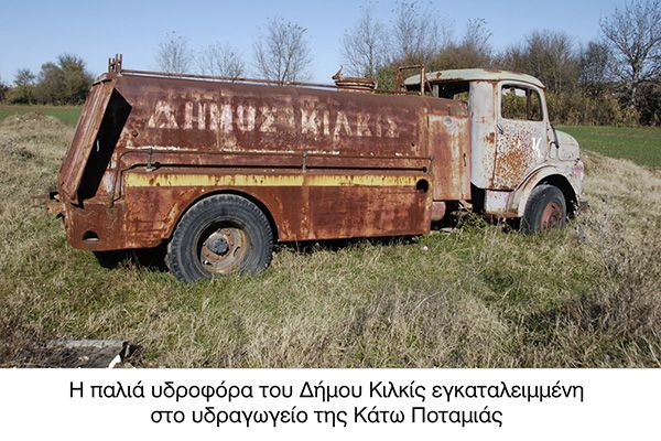 Το όχημα αυτό το ξαναβρήκα στο υδραγωγείο της Κάτω Ποταμιάς όταν αναζητούσα υλικό για το λεύκωμα μου «Ο υδάτινος κόσμος του Κιλκίς». Δεν μπορώ να σας κρύψω ότι συγκινήθηκα όταν ξαναείδα την υδροφόρα που με τις βεντάλιες του νερού δρόσιζε μαζί με τους δρόμους της πόλης και τις παιδικές ψυχές μας. Δεν μπορώ επίσης να σας κρύψω ότι με θλίβει το γεγονός ότι τα τεκμήρια της μικροϊστορίας της πόλης μας εγκαταλείπονται στη λήθη με αυτόν τον ανάξιο τρόπο.
