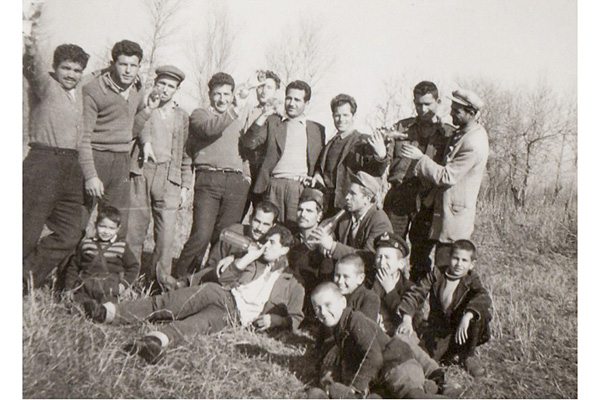 Στη φωτογραφία είναι πρώτος αριστερά όρθιος, λίγα χρόνια αργότερα, σε υπαίθριο γλέντι στο χωριό.