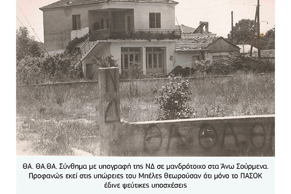 Οι αφίσες ενός κόμματος για ελάχιστο χρόνο παρέμεναν σε κοινή θέα, αφού ταχύτατα επικαλύπτονταν («καπελώνονταν») από τις αφίσες άλλων κομμάτων, καθώς τα περί δεοντολογίας στην πολιτική διαπάλη αποτελούσαν κενό γράμμα. Έτσι οι πράσινες αφίσες με το σύνθημα Ο ΛΑΟΣ ΘΕΛΕΙ ΤΟ ΠΑΣΟΚ ΜΠΟΡΕΙ, σκεπάζονταν από τις γαλάζιες που έθεταν το ερώτημα ΠΟΙΑ ΑΛΛΑΓΗ;;; που κρύβονταν κι αυτές από τις αφίσες του ΚΚΕ με το διαχρονικό κάλεσμα ΚΚΕ ΙΣΧΥΡΟ ΣΤΗ ΒΟΥΛΗ ΚΑΙ ΤΟ ΛΑΟ.