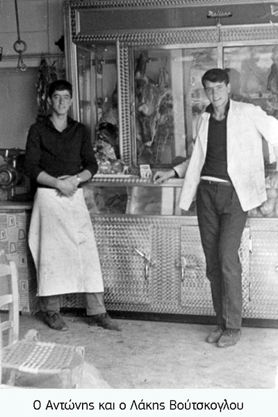 Μπροστά στο μαγαζί του, με μια χάρτινη φούντα στο χέρι, ο Θανασός, ο «μπουνάκης», έδιωχνε τις μύγες από τα κρεμασμένα κρέατα. Και οι περαστικοί όλο και του πετούσαν κανένα φιλικό πείραγμα που ο Θανασός ανταπέδιδε μ’ εκείνο το παιδιάστικο, αθώο του χαμόγελο».