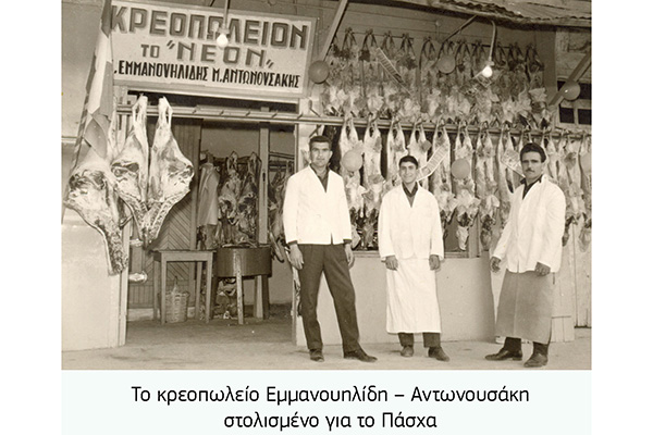 Δεν έχω, επίσης, να σας δώσω καμιά συμβουλή για την παρασκευή της παραδοσιακής μαγειρίτσας αφού και οι περί μαγειρικής γνώσεις μου είναι ελλιπείς. Μπορώ όμως, αφού το ζήτημα των αμνοεριφίων, εντοπίων ή «εξελληνισμένων», είναι επίκαιρο, να κάνω μια σύντομη αναφορά στα παλιά κρεοπωλεία της πόλης μας που τη Μεγάλη Εβδομάδα είχαν τη μεγαλύτερη κατανάλωση κρέατος και μάλιστα διακοσμούνταν κατάλληλα, όπως όλοι θυμόμαστε από τα παιδικά μας χρόνια.