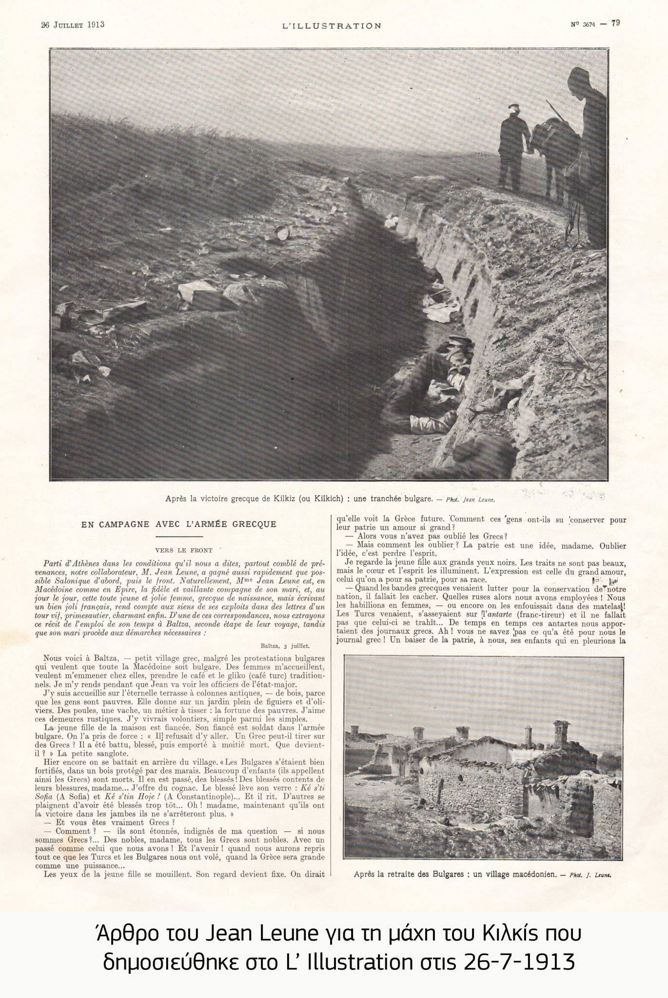 Τα ονόματα των ξένων δημοσιογράφων που περιέγραψαν τη μάχη του Κιλκίς μας είναι γνωστά είτε από τα άρθρα τους, τα οποία οι ελληνικές εφημερίδες αλίευαν από τον ευρωπαϊκό Τύπο και αναδημοσίευαν στα δικά τους φύλλα είτε από τις θετικές δηλώσεις τους για την ελληνική πλευρά, τις οποίες οι Έλληνες συνάδελφοι τους φρόντιζαν να δημοσιοποιήσουν αμέσως. Κάποιοι από αυτούς, όπως ο Κρώφορδ Πράις των λονδρέζικων TIMES, ήταν μόνιμα εγκατεστημένοι στη Θεσσαλονίκη, άλλοι όπως ο Rene Puaux του παρισινού LE TEMPS επισκέπτονταν συχνά την Ελλάδα ενώ για τους υπόλοιπους γνωρίζουμε μόνο τα στοιχεία τους. Αυτοί ήταν ο Albert Trapman και ο Στήβενς της DAILY TELEGRAPH, o Luciano Magrini του IL SECOLO του Μιλάνου, ο Fausto Martini της LA TRIBUNA της Ρώμης ενώ υπήρχαν και ανταποκριτές των γαλλικών εφημερίδων FIGARO και JOURNAL. Ανάμεσά τους κι ένα ανδρόγυνο, ο φωτογράφος του L’ ILLUSTRATION Jean Leune και η ελληνικής καταγωγής σύζυγος του, μια γυναίκα ριψοκίνδυνη που δε δίσταζε να κινείται άφοβα στην πρώτη γραμμή του πυρός.