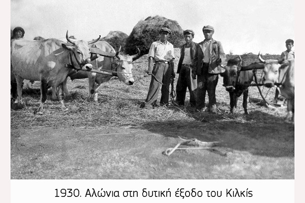 Στη συνέχεια έμπαιναν στο αλώνι τα ζώα, που δένονταν από τα περιλαίμια τους στο ένα από τα άκρα ενός σκοινιού, ενώ το άλλο άκρο δενόταν στον κεντρικό στύλο. Τα ζώα περιστρεφόμενα στην επιφάνεια του αλωνιού πατούσαν και έτριβαν τα στάχια. Κατά την περιστροφή το σκοινί τυλιγόταν γύρω από τον στύλο και έτσι τα ζώα διαρκώς πλησίαζαν προς το κέντρο. Κατόπιν περιστρέφονταν αντίθετα ξετυλίγοντας το σκοινί και απομακρύνονταν από τον στύλο. Μετά από μερικές περιστροφές των ζώων τα στάχια είχαν τριφτεί. Ο γεωργός που εκτελούσε τον αλωνισμό πρόσεχε τα ζώα να μην κοπρίσουν και λερώσουν τα στάχια γι’ αυτό είχε μαζί του ένα τενεκέ, ενώ οι Θρακιώτες συνήθιζαν να βάζουν στα ζώα φίμωτρο για να μην τρώνε τον καρπό.