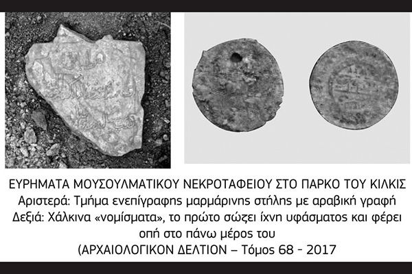 Συλλέχθηκαν υπολείμματα οργανικών υλικών, όπως από ξύλινα φέρετρα, υφάσματα πράσινου χρώματος και υποδήματα. Ακόμη διαφόρων τύπων πινάκια, γυάλινα μπουκάλια, μετάλλινα αντικείμενα, δισκόμορφα «φλουράκια» με οπή προσάρτησης σε ύφασμα με αραβικά γράμματα, γυάλινα βραχιόλια, θραύσμα πήλινης πίπας καπνίσματος, σπάραγμα μαρμάρινης επιγραφής με αραβικούς χαρακτήρες κ.ά».