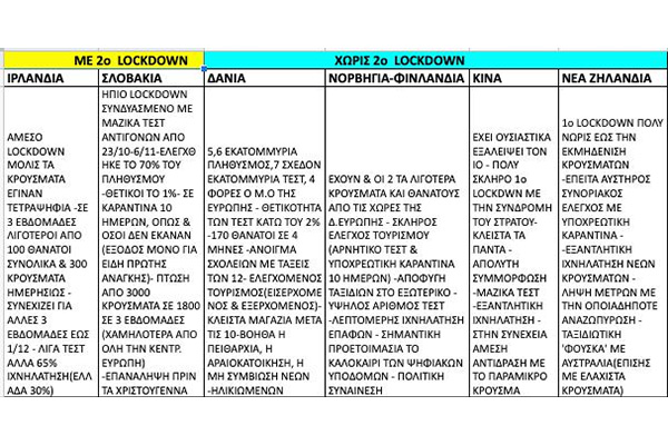 Τα τετραψήφια νούμερα των κρουσμάτων ακολούθησαν μετά από 3 εβδομάδες περιορισμού λιγότερα από 300 κρούσματα και λιγότεροι από 100 θάνατοι συνολικά. Η Ιρλανδία θα συνεχίσει με μέτρα μέχρι την 1/12 και αντίστοιχα έχει υψηλή ιχνηλάτηση στα κρούσματα που φτάνει το 65% (στην Ελλάδα είμαστε κάτω από 30% και αυτό αποδεικνύει την αδυναμία μας στην προσπάθεια ελέγχου της πανδημίας).
