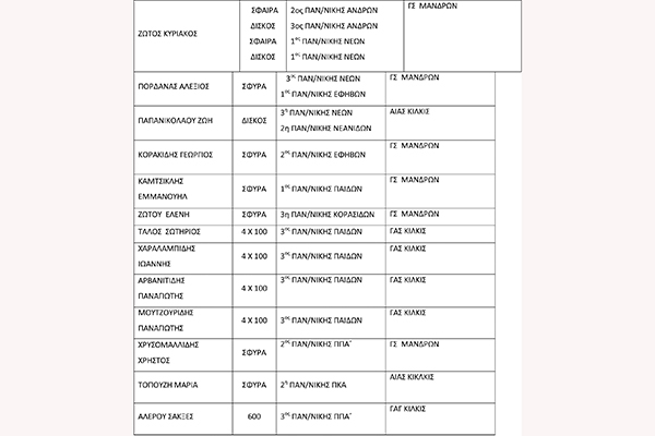 Οι αθλητές – ιες των σωματείων του Κιλκίς που θα βραβευτούν είναι οι: