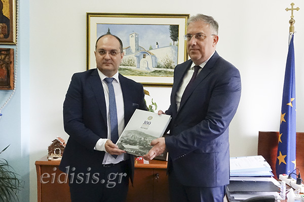Με την ευκαιρία της τιμητικής επίσκεψης στο Δημαρχείο και του εορτασμού της 107ης επετείου της ιστορικής μάχης του Κιλκίς ο κ. Κυριακίδης επέδωσε στον Υπουργό Εσωτερικών λεύκωμα για τα εκατό χρόνια ιστορίας του Κιλκίς.