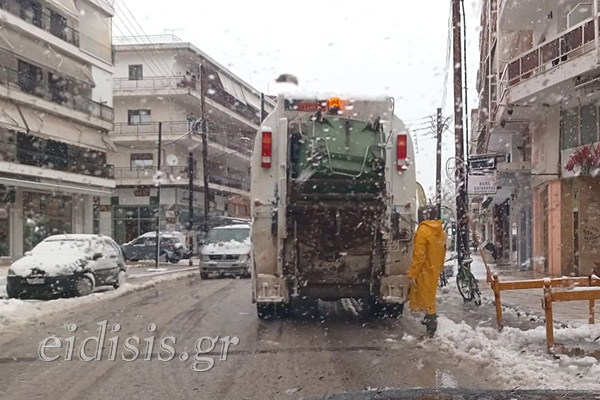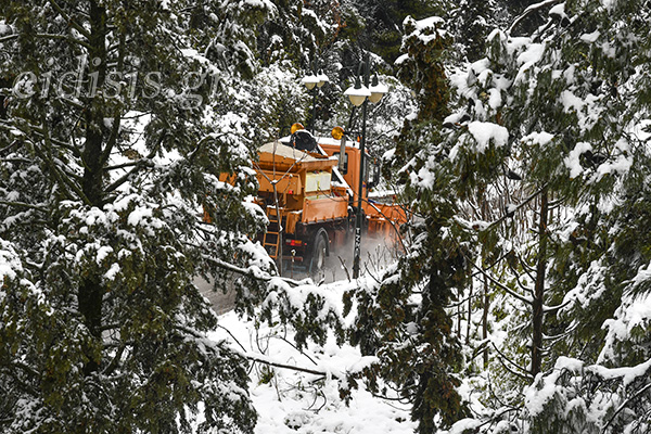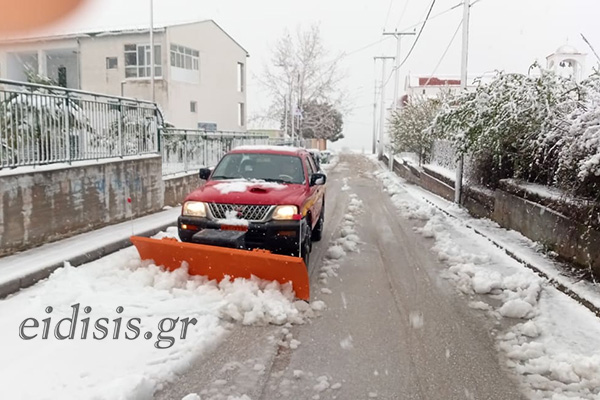 Στις 7 το πρωί και αφού καθάρισε μεγάλο μέρος της πόλης μηχανήματα του δήμου κατευθύνθηκαν προς τα χωριά και ιδιαίτερα αυτά των Κρουσίων για να καθαρίσουν τους δρόμους.