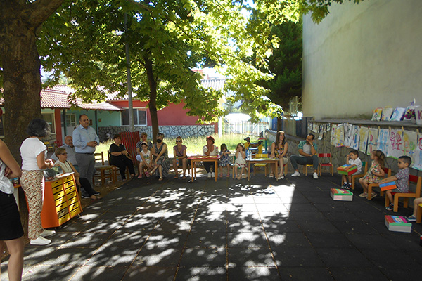 Αυτός ήταν και ο τίτλος της έκθεσης ζωγραφικής που παρουσιάστηκε χθες το πρωί κάτω από το μεγάλο πλατάνι στο σκιερό προαύλιο της προσχολικής δομής, με πρώτους επισκέπτες τον Δήμαρχο Κιλκίς Δημήτρη Κυριακίδη τον Πρόεδρο του Οργανισμού Παιδικών – Βρεφονηπιακών Σταθμών Νίκο Στανημερόπουλο, τη Διευθύντρια του Νομικού Προσώπου Κατερίνα Λουϊζάκη και τους γονείς και συγγενείς που συνεχάρησαν τους μικρούς ζωγράφους για τις χειροποίητες εικαστικές τους δημιουργίες.