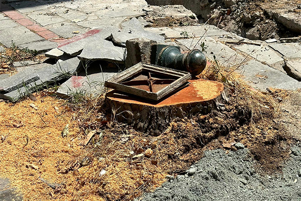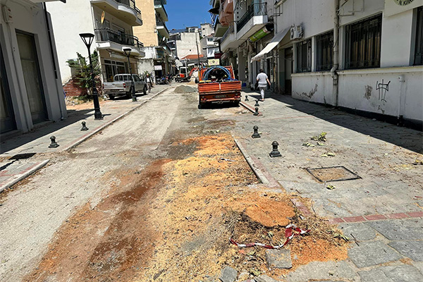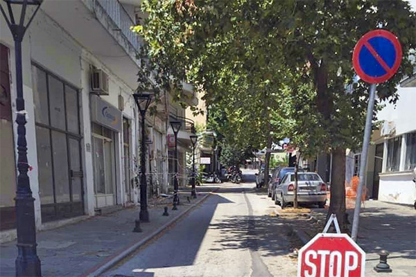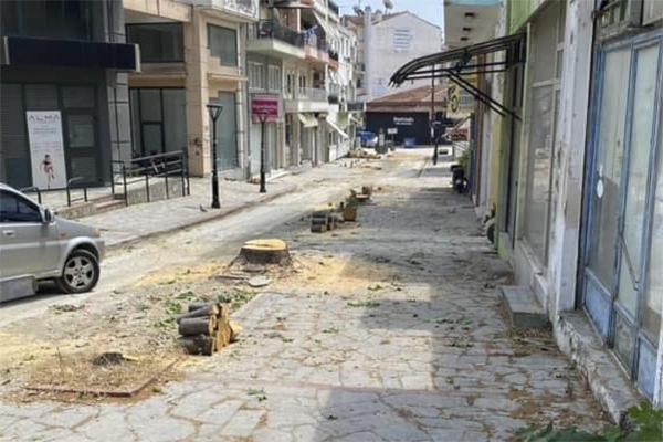 Η κοπή των δένδρων έγινε με το ξεκίνημα των εργασιών για την αναμόρφωση των πεζοδρομίων στο δρόμο αυτό, μέσω του μεγάλου έργου που ξεκίνησε στην πόλη και αφορά τη δημιουργία του «Ανοιχτού Κέντρου Εμπορίου» (Open Mall), προϋπολογισμού 1.382.268 ευρώ.