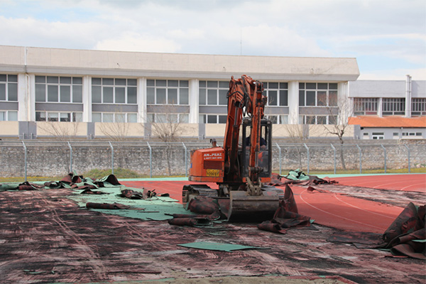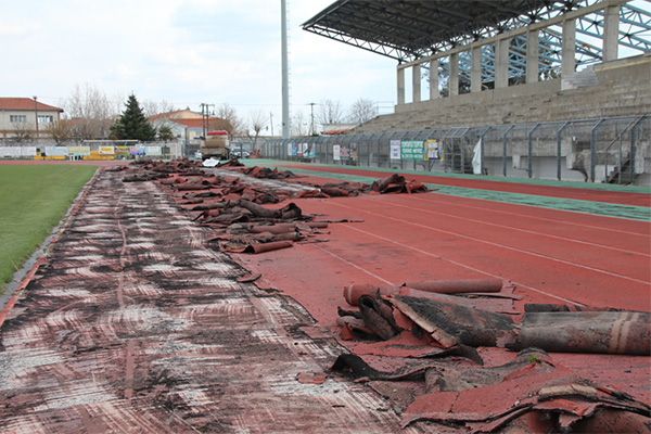 -επίστρωση αγωνιστικών επιφανειών στίβου (διαδρομές στίβου, εσωτερικές περιοχές διεξαγωγής αγωνισμάτων στίβου, διάδρομοι αλμάτων μήκους και επί κοντώ, περιμετρικοί διάδρομοι ασφαλείας και περιοχές κίνησης αθλητών).