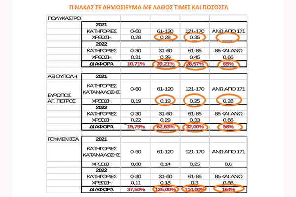 Υ.Γ.: Παραθέτουμε προς αποκατάσταση της αλήθειας τον πίνακα με τα αναληθή στοιχεία που δημοσιεύτηκε και τον πίνακα που ανταποκρίνεται στην πραγματικότητα.