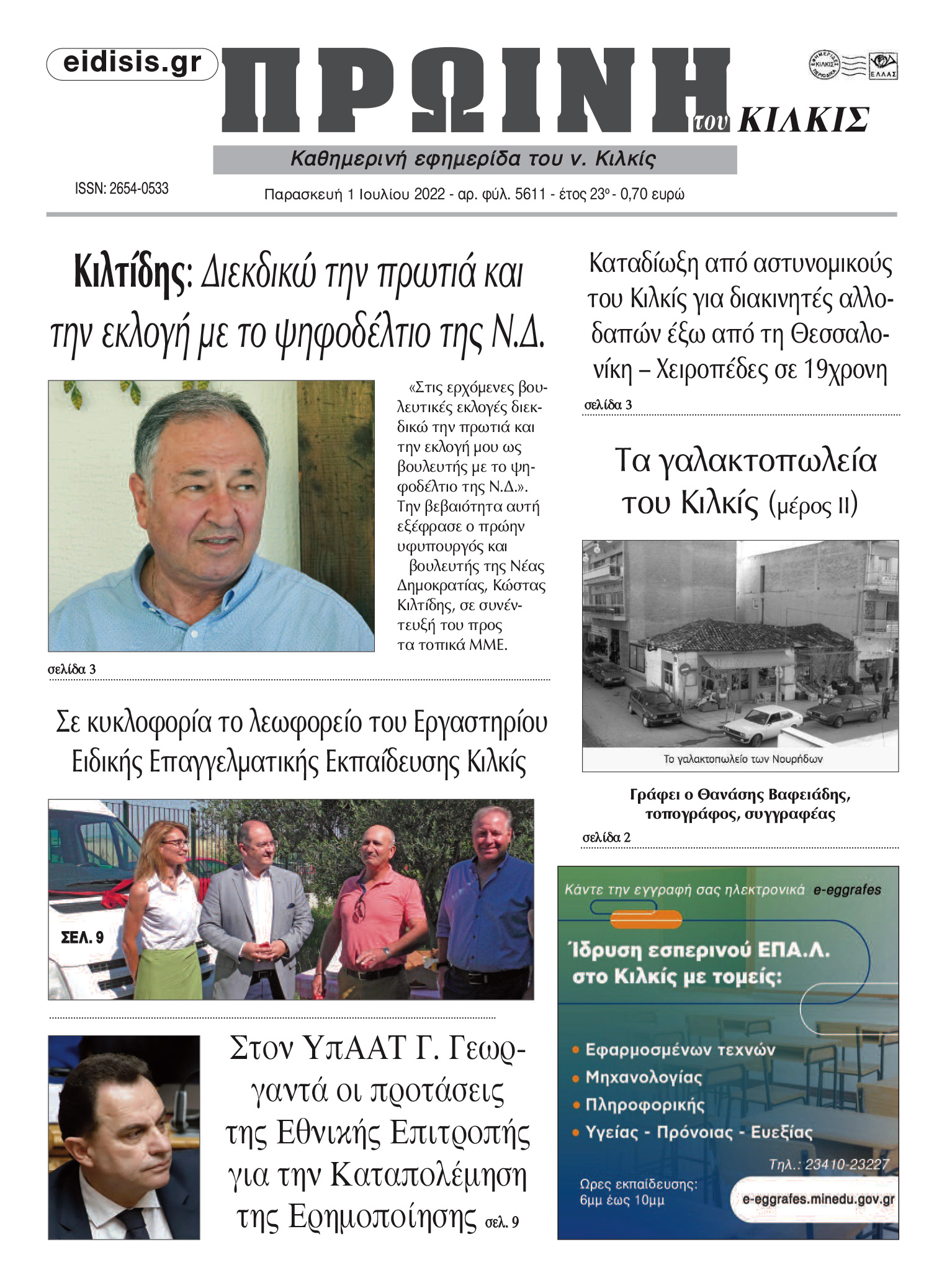 Διαβάστε το νέο πρωτοσέλιδο της Πρωινής του Κιλκίς, μοναδικής καθημερινής εφημερίδας του ν. Κιλκίς (1-7-2022)