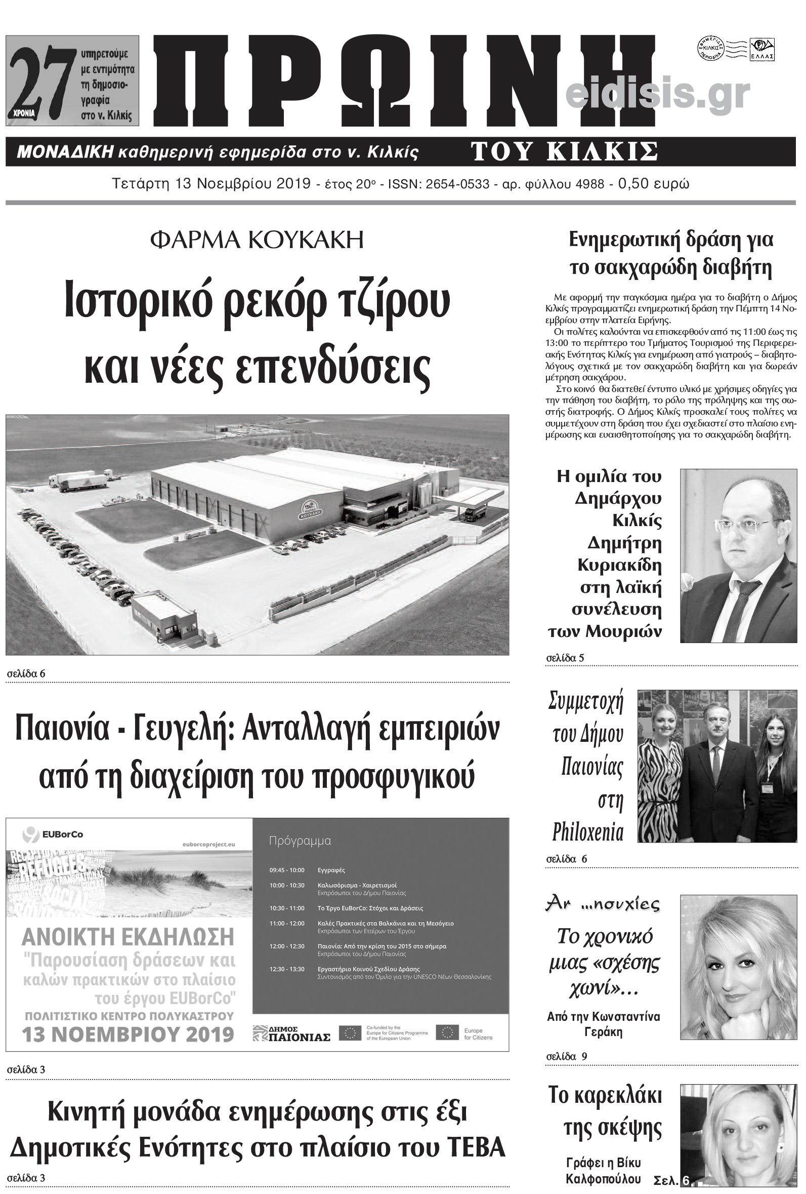 Διαβάστε το νέο πρωτοσέλιδο της Πρωινής του Κιλκίς, μοναδικής καθημερινής εφημερίδας του ν. Κιλκίς (13-11-2019)