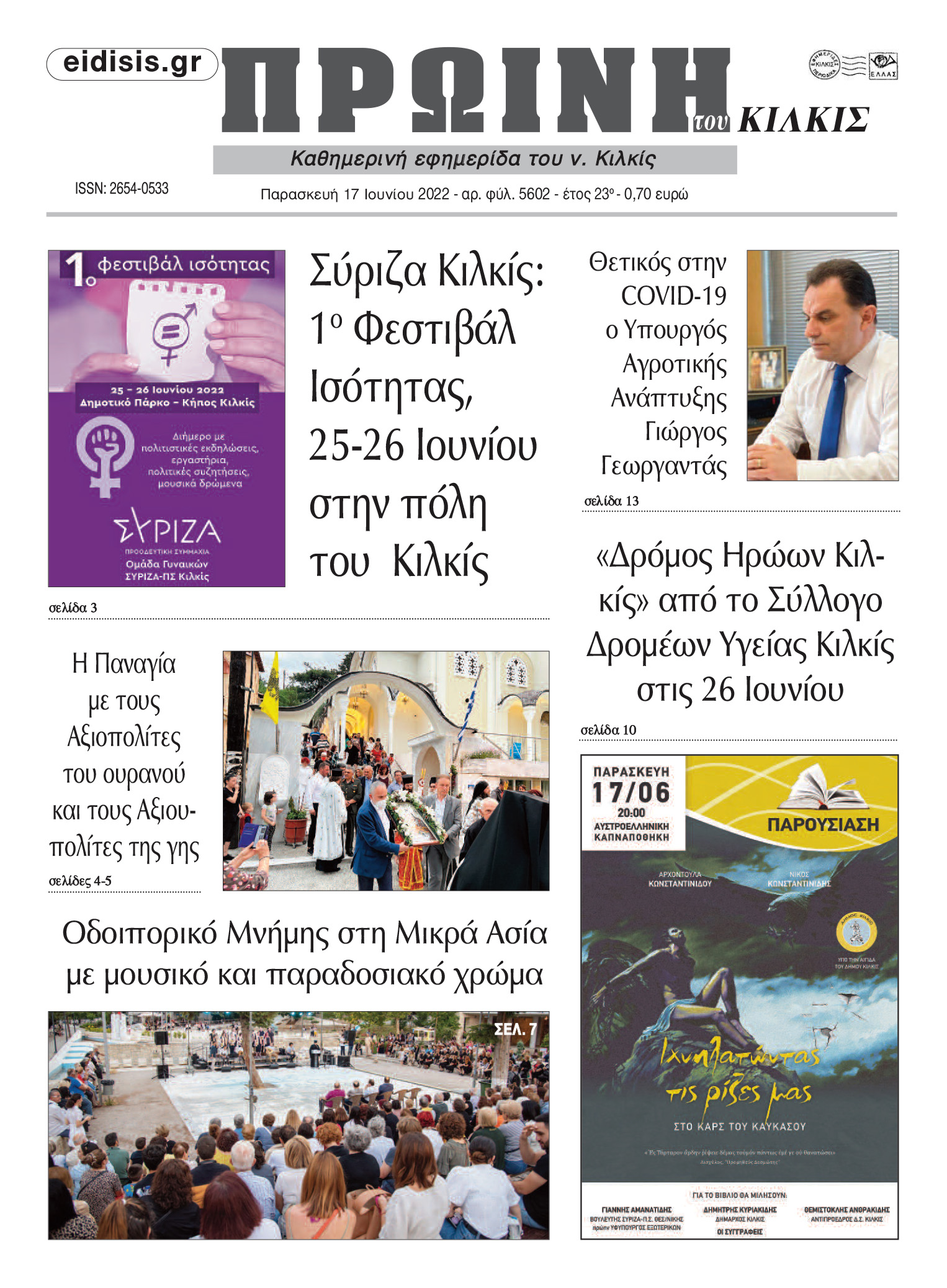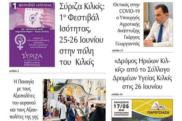 Διαβάστε το νέο πρωτοσέλιδο της Πρωινής του Κιλκίς, μοναδικής καθημερινής εφημερίδας του ν. Κιλκίς (17-6-2022)