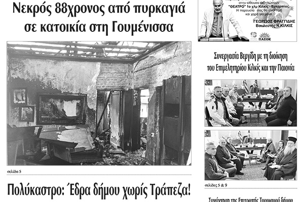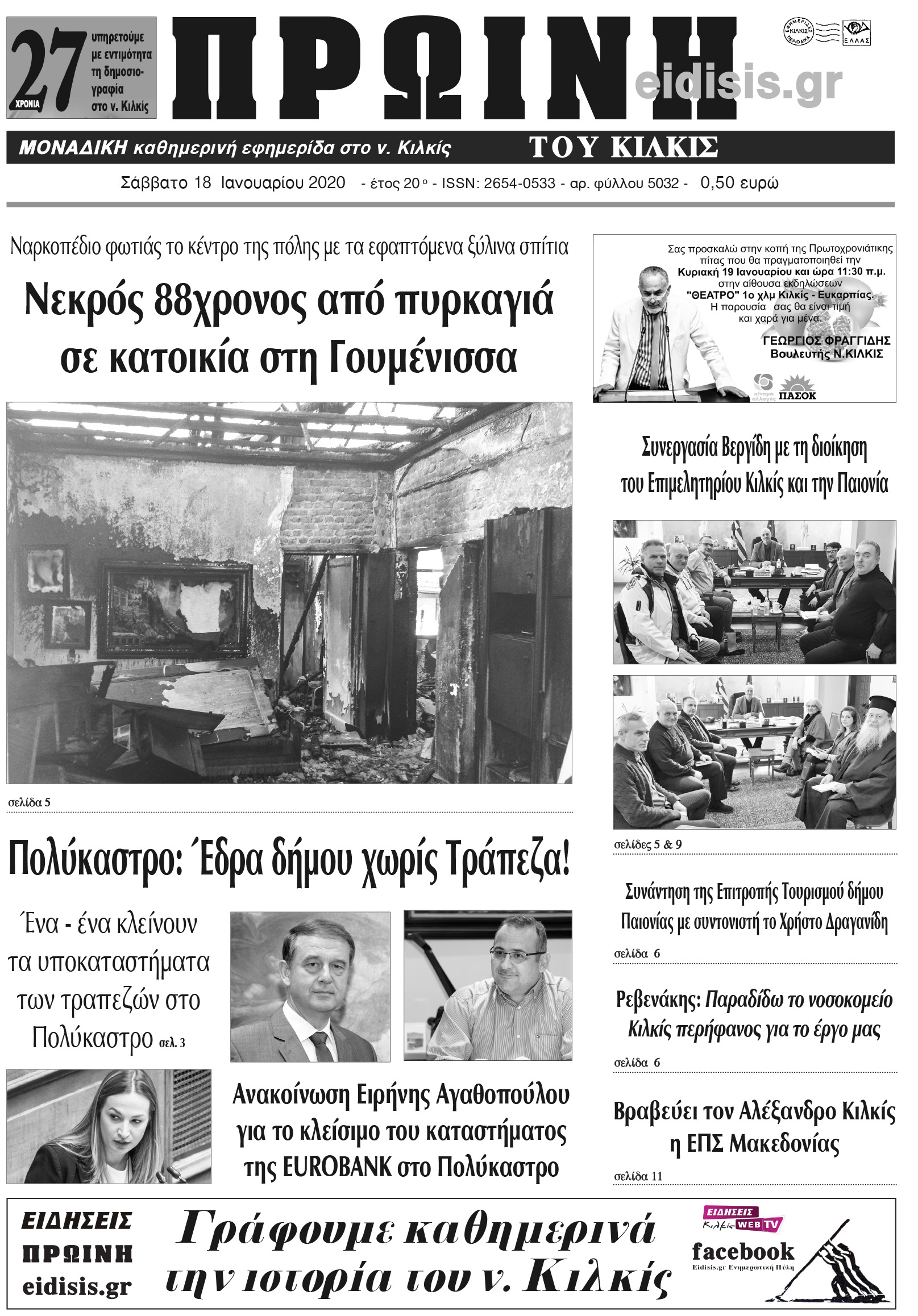 Διαβάστε το νέο πρωτοσέλιδο της Πρωινής του Κιλκίς, μοναδικής καθημερινής εφημερίδας του ν. Κιλκίς (18-1-2020)