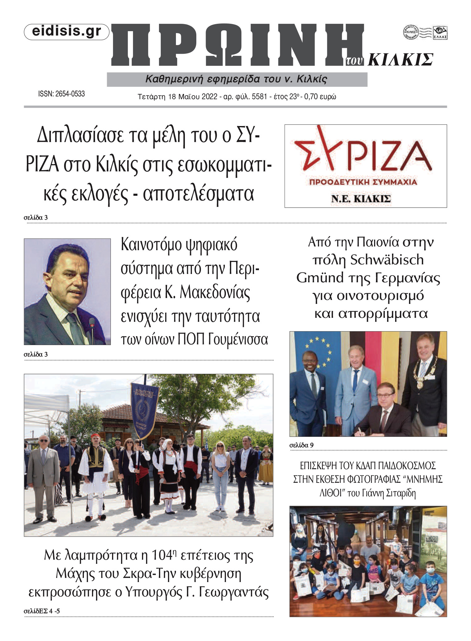 Διαβάστε το νέο πρωτοσέλιδο της Πρωινής του Κιλκίς, μοναδικής καθημερινής εφημερίδας του ν. Κιλκίς (18-5-2022)
