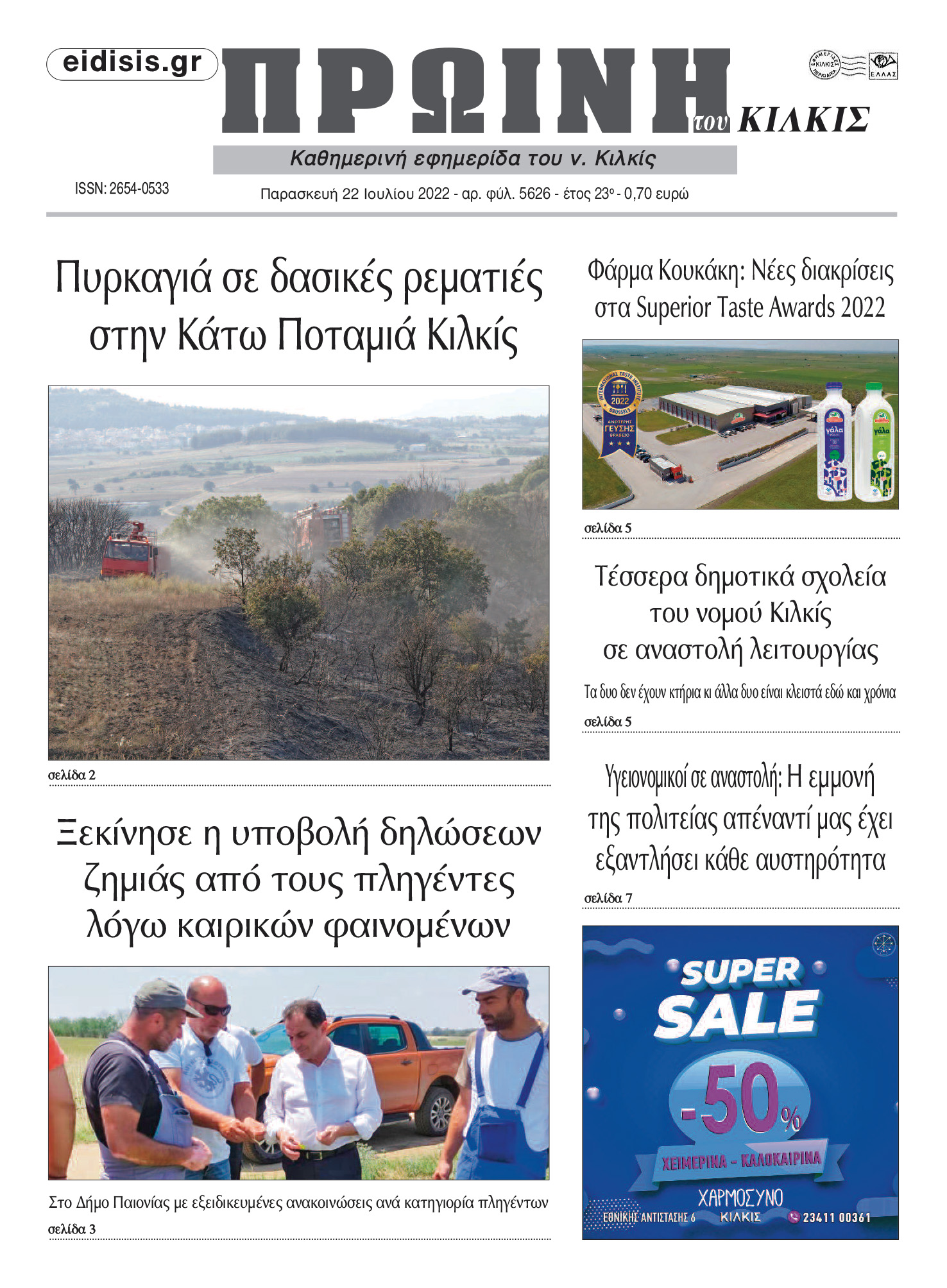 Διαβάστε το νέο πρωτοσέλιδο της Πρωινής του Κιλκίς, μοναδικής καθημερινής εφημερίδας του ν. Κιλκίς (22-7-2022)