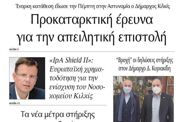 Διαβάστε το νέο πρωτοσέλιδο της Πρωινής του Κιλκίς, μοναδικής καθημερινής εφημερίδας του ν. Κιλκίς (31-12-2021)