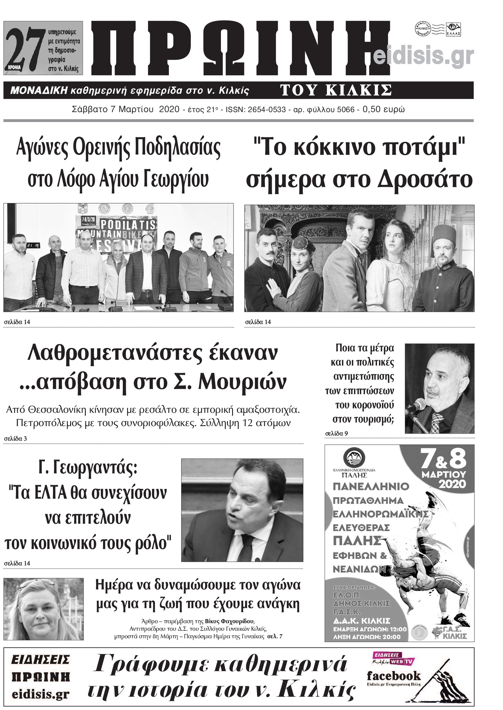 Διαβάστε το νέο πρωτοσέλιδο της ΠΡΩΙΝΗΣ του Κιλκίς, της μοναδικής καθημερινής εφημερίδας του ν. Κιλκίς (7-3-2020))