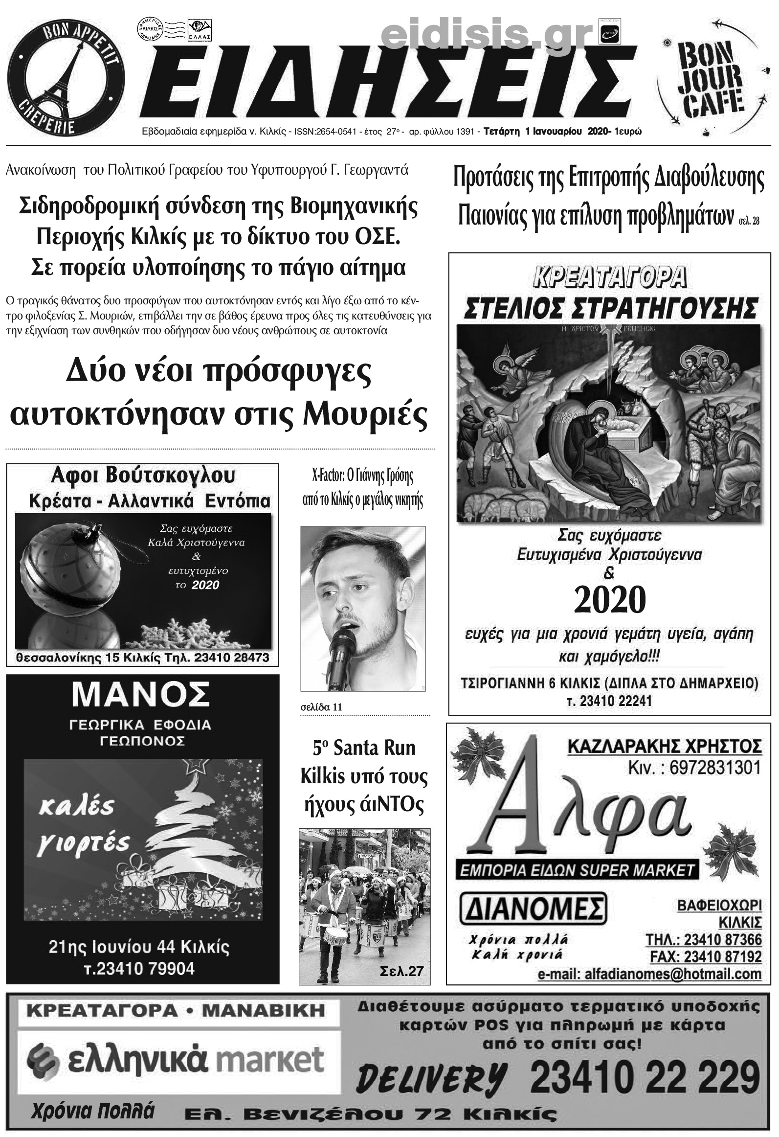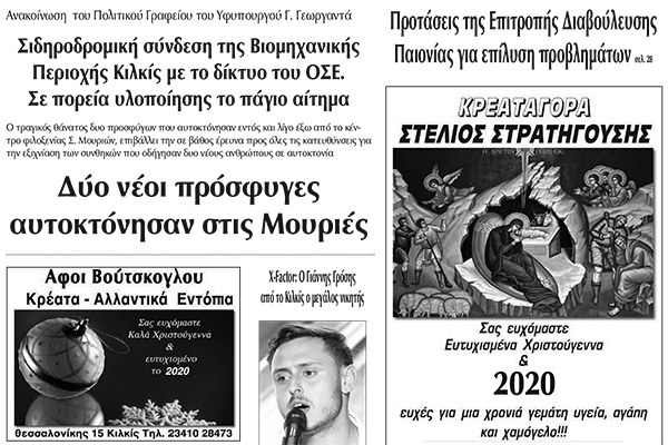 Διαβάστε το νέο πρωτοσέλιδο των ΕΙΔΗΣΕΩΝ του Κιλκίς, της εβδομαδιαίας εφημερίδας του ν. Κιλκίς (1-1-2020)