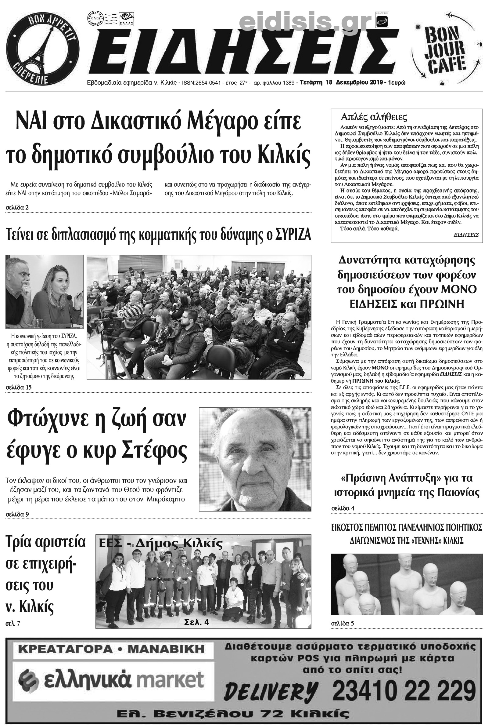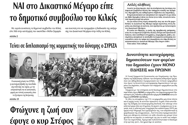 Διαβάστε το νέο πρωτοσέλιδο των ΕΙΔΗΣΕΩΝ του Κιλκίς, της εβδομαδιαίας εφημερίδας του ν. Κιλκίς (18-12-2019)
