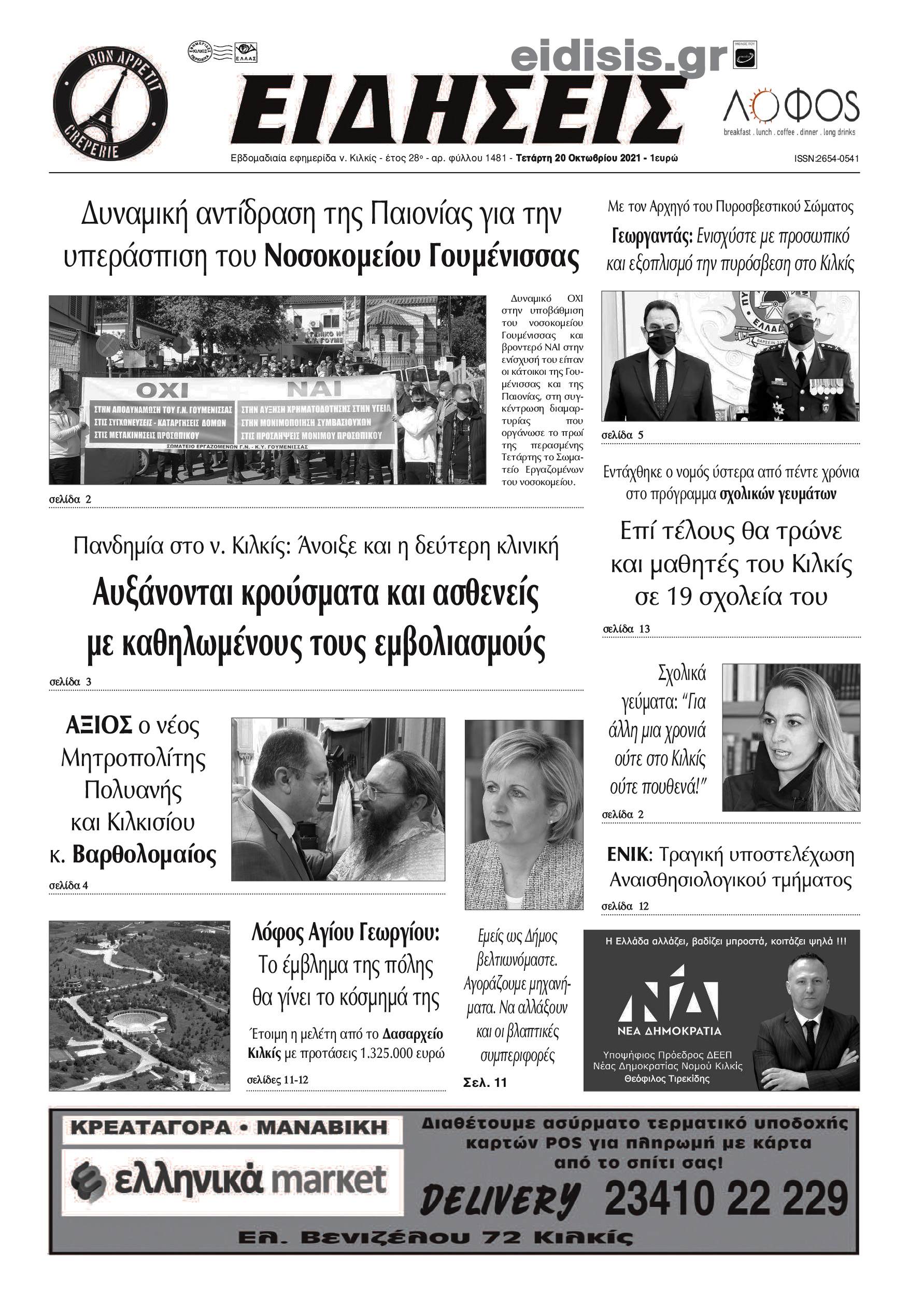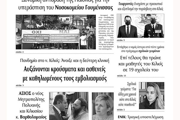 Διαβάστε το νέο πρωτοσέλιδο των ΕΙΔΗΣΕΩΝ του Κιλκίς, της εβδομαδιαίας εφημερίδας του ν. Κιλκίς (20-10-2021)