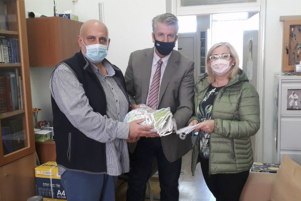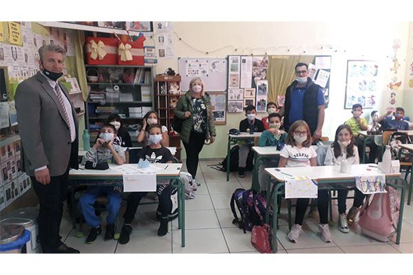 Το 2ο Δημοτικό Σχολείο Γουμένισσας επισκέφθηκαν ο Πρόεδρος της Κοινότητας Γουμένισσας Αστέριος Τάτσης με τοπικούς συμβούλους και προσέφεραν δωρεάν παιδικές μάσκες στον διευθυντή κ. Φώτη Γίγκερη, ως ένδειξη συμμετοχής τους στην προστασία των μαθητών από την πανδημία του Covid 19.