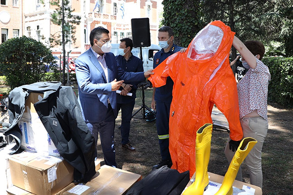 -Παρέδωσε περισσότερους από 35 τόνους υγειονομικού υλικού και είδη ατομικής προστασίας, όπως ειδικές στολές, αντισηπτικά, μάσκες και γάντια στις γυναίκες και τους άντρες της αστυνομίας, της πυροσβεστικής, του λιμενικού, στους γιατρούς, τους νοσηλευτές και τους διασώστες του ΕΚΑΒ.