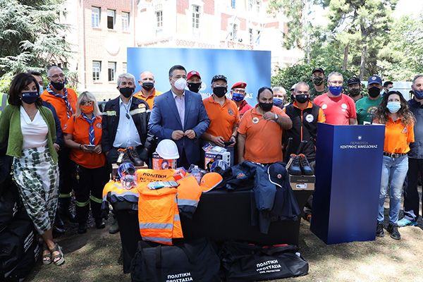 Σε ειδική τελετή, που πραγματοποιήθηκε στο κτίριο διοίκησης της Περιφέρειας, στους κήπους της Βίλας Αλλατίνι, στη Θεσσαλονίκη, ο κ. Τζιτζικώστας παρέδωσε τα είδη που αντιστοιχούν στις υπηρεσίες Πολιτικής Προστασίας και τις εθελοντικές ομάδες της Μητροπολιτικής Ενότητας Θεσσαλονίκης. Τις επόμενες μέρες, με ευθύνη των τοπικών Αντιπεριφερειαρχών θα παραδοθούν τα υλικά στα στελέχη Πολιτικής Προστασίας των Δήμων και στους εθελοντές των άλλων έξι Περιφερειακών Ενοτήτων της Κεντρικής Μακεδονίας. Συνολικά η Περιφέρεια Κεντρικής Μακεδονίας θα διαθέσει 17.700 είδη ατομικής προστασίας και εξοπλισμού.