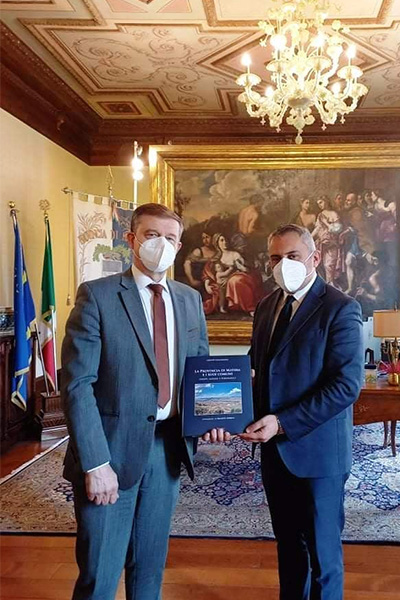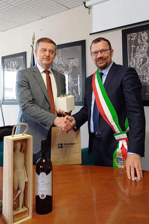 Ο κ. Σιωνίδης βρίσκεται στην Ιταλία στο πλαίσιο της συμμετοχής του δήμου Παιονίας στην έκθεση “VINI da TERRE ESTREME”, με στόχο την προβολή των κρασιών της Παιονίας. Έτσι, ο κ. Σιωνίδης επισκέφτηκε, την Καθαρά Δευτέρα, μαζί με την Ελληνική αποστολή στην οποία συμμετέχει, την Περιφέρεια, τον Δήμο και το Επιμελητήριο της Matera, έχοντας ουσιαστικές συνομιλίες με τα στελέχη τους, ανταλλάσσοντας ιδέες αλλά και αναμνηστικά δώρα, με τα αντίγραφα του Κούρου της Ευρωπού να κλέβουν την παράσταση.