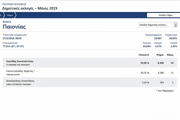 Επίσημα αποτελέσματα για το Δήμο Παιονίας