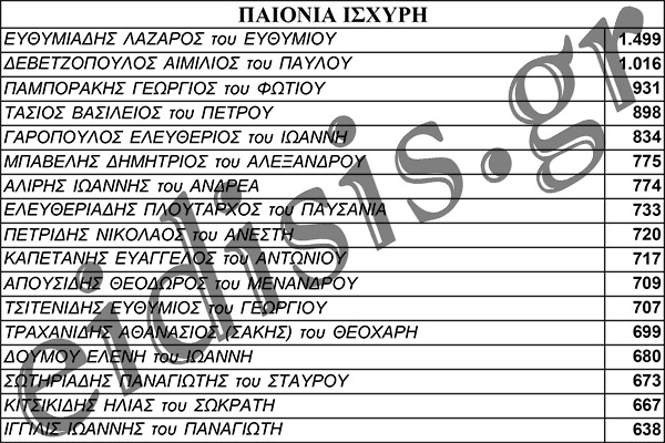 Επίσημα αποτελέσματα-σταυροί για την "Παιονία Ισχυρή" του Χρήστου Γκουντενούδη.