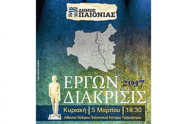 Ο Δήμος Παιονίας όπως κάθε χρόνο διοργανώνει και φέτος ειδική εκδήλωση βράβευσης διακεκριμένων προσώπων, φορέων, συλλόγων και επιχειρήσεων με τίτλο «ΕΡΓΩΝ ΔΙΑΚΡΙΣΙΣ» ΠΑΙΟΝΙΑ 2017».